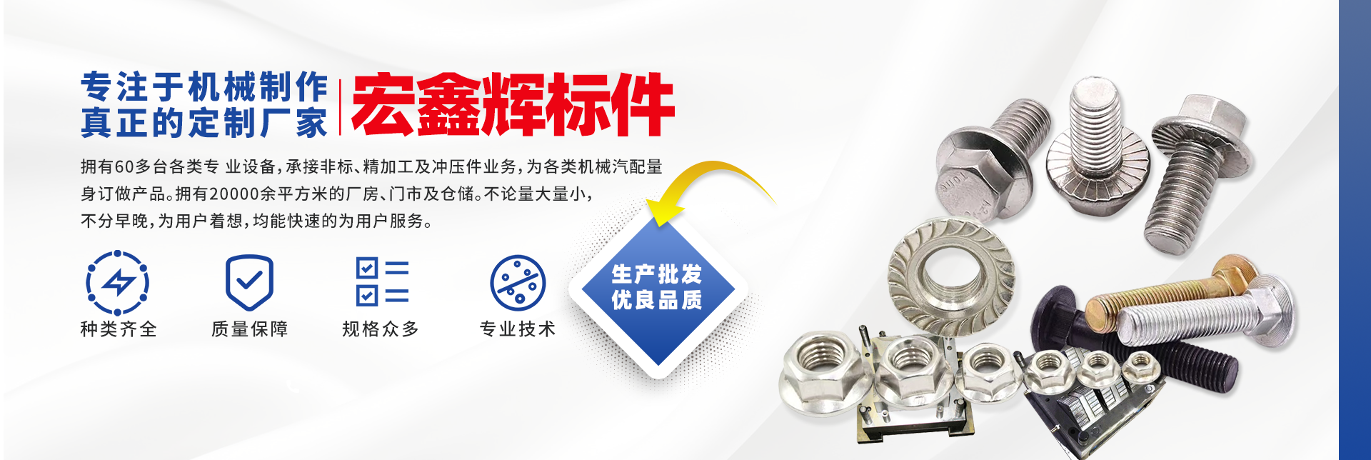 四川宏鑫輝標(biāo)準(zhǔn)件制造有限公司下設(shè):南充市宏輝機(jī)械制造有限公司,南充市聚宏機(jī)電設(shè)備有限公司,公司始建于1994年。為了拓展市場(chǎng),降低成本,本公司于2007年、2020年分別在南充、 成都、重慶創(chuàng)建了生產(chǎn)基地。擁有60多臺(tái)各類(lèi)專(zhuān) 業(yè)設(shè)備,承接非標(biāo)、精加工及沖壓件業(yè)務(wù),為各 類(lèi)機(jī)械汽配量身訂做產(chǎn)品。擁有20000余平方米的廠房、門(mén)市及倉(cāng)儲(chǔ)。公司以誠(chéng)信為本,竭誠(chéng)為廣大客戶提供服務(wù)。不論量大量小,不分早晚,為用戶著想,均能快速的為用戶服務(wù)。 公司所生產(chǎn)及代理的產(chǎn)品為業(yè)界人士公認(rèn)的國(guó)內(nèi)、國(guó)際優(yōu)等品牌。在產(chǎn)品性能與質(zhì)量